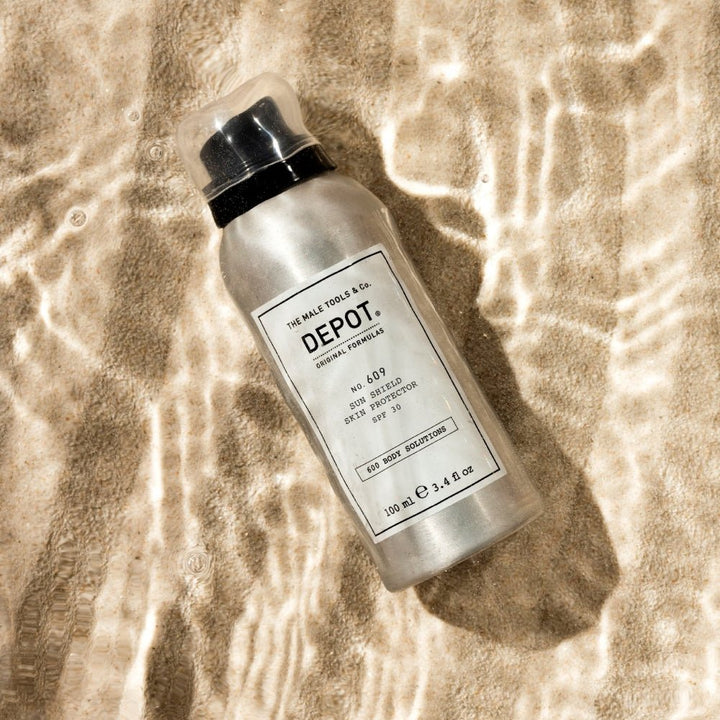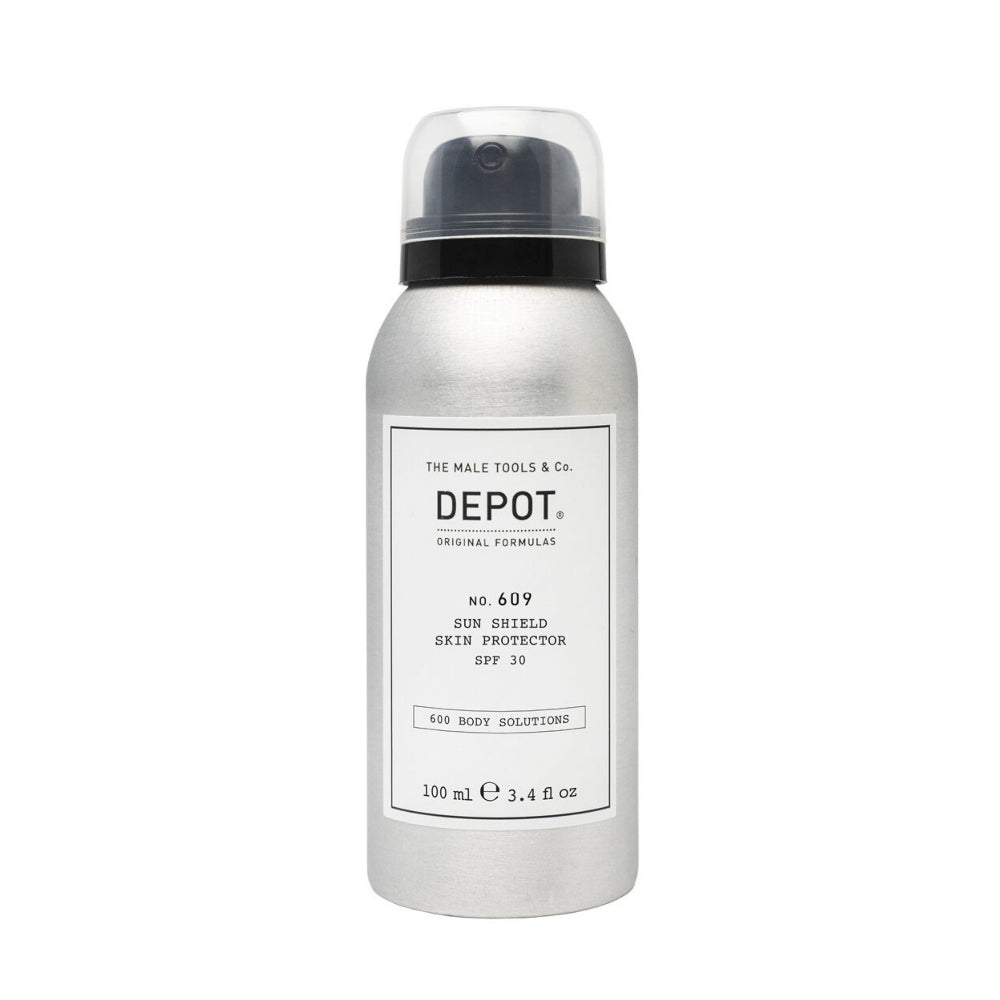 Depot No. 609 Sun Shield Skin Protector SPF30 è uno spray solare trasparente SP30, resistente all'acqua e dalla texture ultra-fine. La sua formula leggera con SPF 30 si assorbe rapidamente senza lasciare una sensazione di unto, garantendo al contempo una protezione di lunga durata.