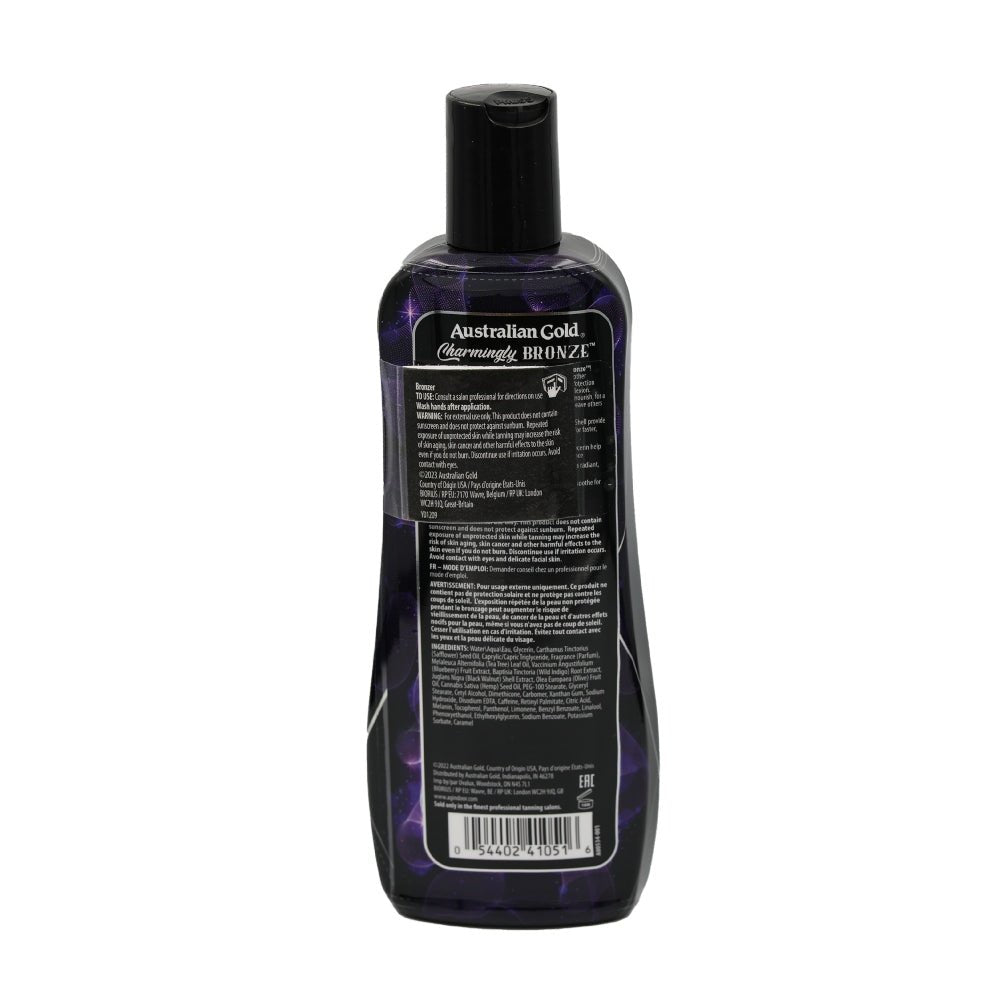 Australian Gold Charmingly Bronze con la sua lussuosa formula combina abbronzanti istantanei e a lunga durata con ingredienti nutrienti per lasciare la pelle luminosa, idratata e setosa al tatto.