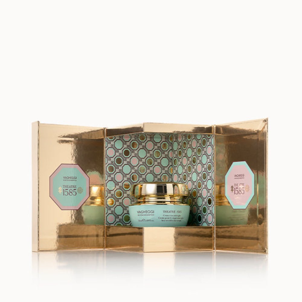 Scopri Vagheggi THEATRE 1585 Crema Viso Antirughe 50ml, l'essenza della bellezza racchiusa in un formato esclusivo. Questa crema, protagonista della nuova Christmas Limited Edition Vagheggi 2025, è un vero e proprio regalo per la tua pelle.