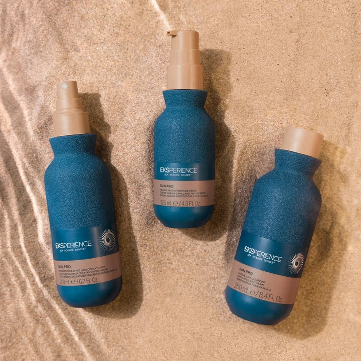 Eksperience Sun kit Solare è una soluzione rivoluzionaria per rigenerare e proteggere i capelli dopo l'esposizione al sole, al cloro e all'acqua salata