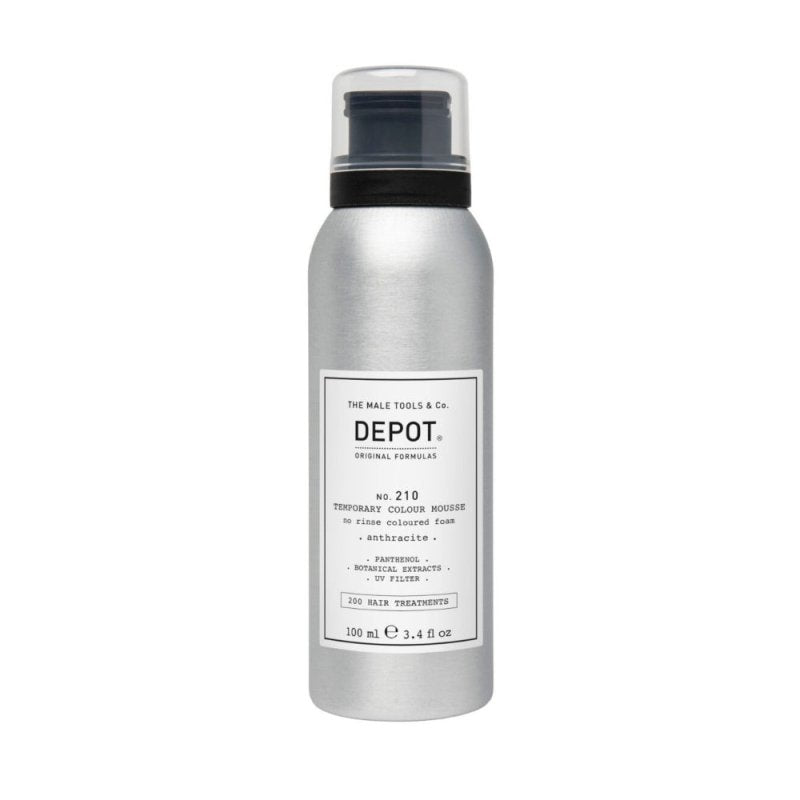 A soft charcoal gray colored mousse designed for the needs of men's hair . Depot No. 210 Temporary Color Mousse Anthracite helps instantly and easily mask and tone white or gray hair.