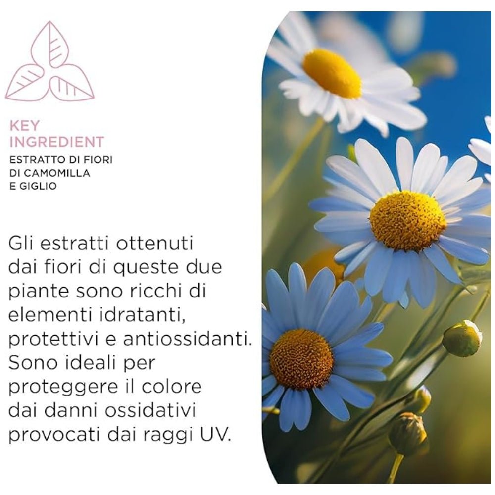 The mask formula contains the patented Velian Complex, based on a blend of four botanicals: mullein, helichrysum, flax, and chamomile, which provide superior UV protection and anti-static properties. Additionally, the mask strengthens hair fibers and protects color from sun-induced fading.