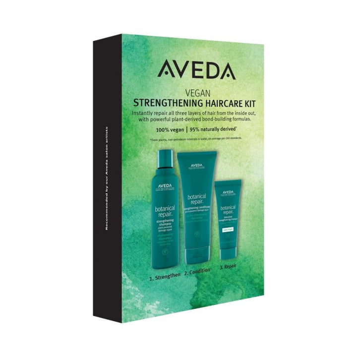 Regalate a voi stessi o ai vostri cari Aveda Botanical Repair Kit Capelli Rovinati che rinforza e ripara istantaneamente i capelli. Lo shampoo senza siliconi deterge lussuosamente, rimuovendo delicatamente l'eccesso di sebo, l'accumulo di prodotti e l'inquinamento. Aiuta a rinforzare e riparare i capelli danneggiati. Il balsamo ricco e delicato aiuta a ridurre la rottura e le doppie punte dei capelli danneggiati. La maschera, in formato travel, ammorbidisce, cura e ripristina i capelli danneggiati e fini.