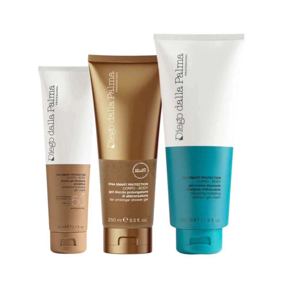 Discover Diego Dalla Palma Professional sun kit SPF 50 , the ideal solution for protecting your skin during a sunny day. This kit contains Protective Moisturizing Gel Cream SPF 50, Tan Prolonging Shower Gel and Refreshing Moisturizing After Sun Gel Cream .