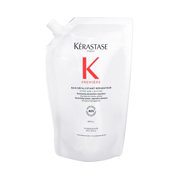 Kerastase Premiere repairing shampoo with pure acids, fights calcium build-up and damage caused by hard water, repairing the surface and internal structure of the hair, resulting in rebuilding the bridges of the damaged fiber for healthy, strong hair.