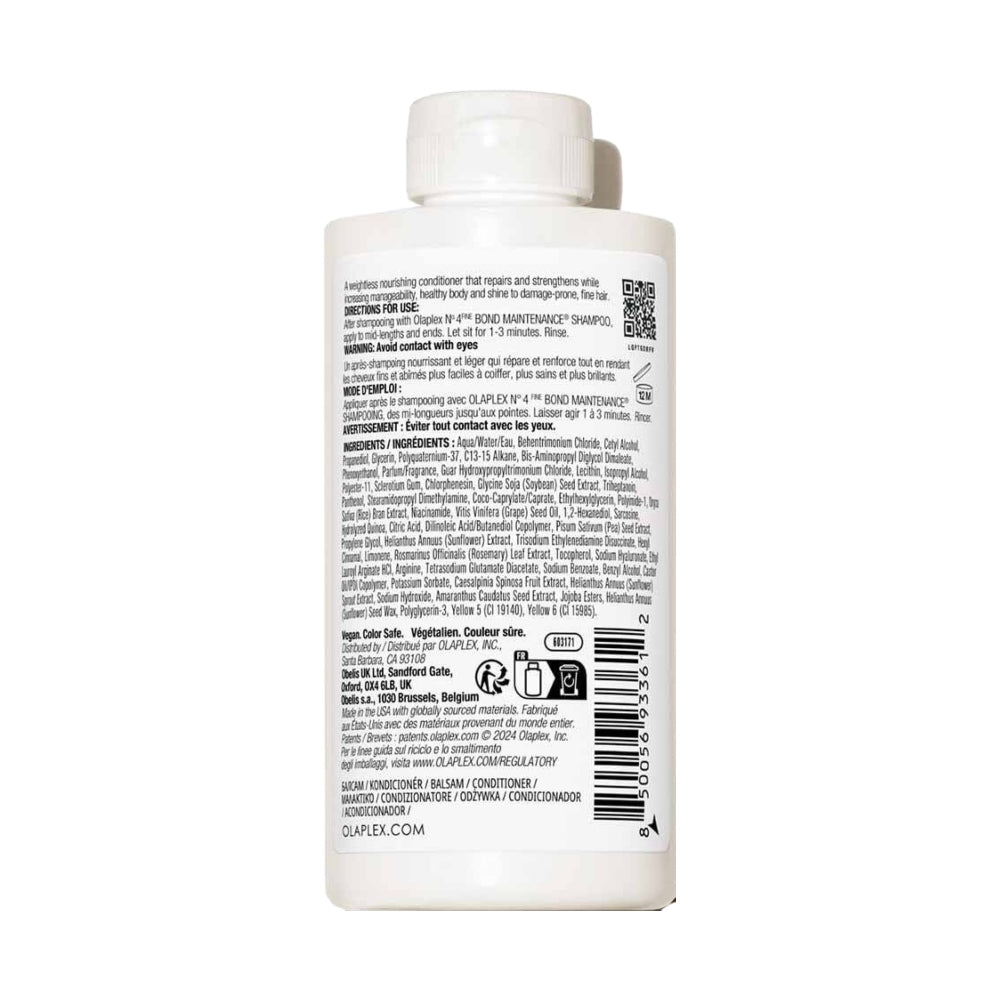 Olaplex 4 Bond Maintenance Shampoo to be used every time you shampoo and after rinsing Olaplex N°3. Massage thoroughly and rinse. Follow with the application of Olaplex N°5 Bond Maintenance Conditioner.