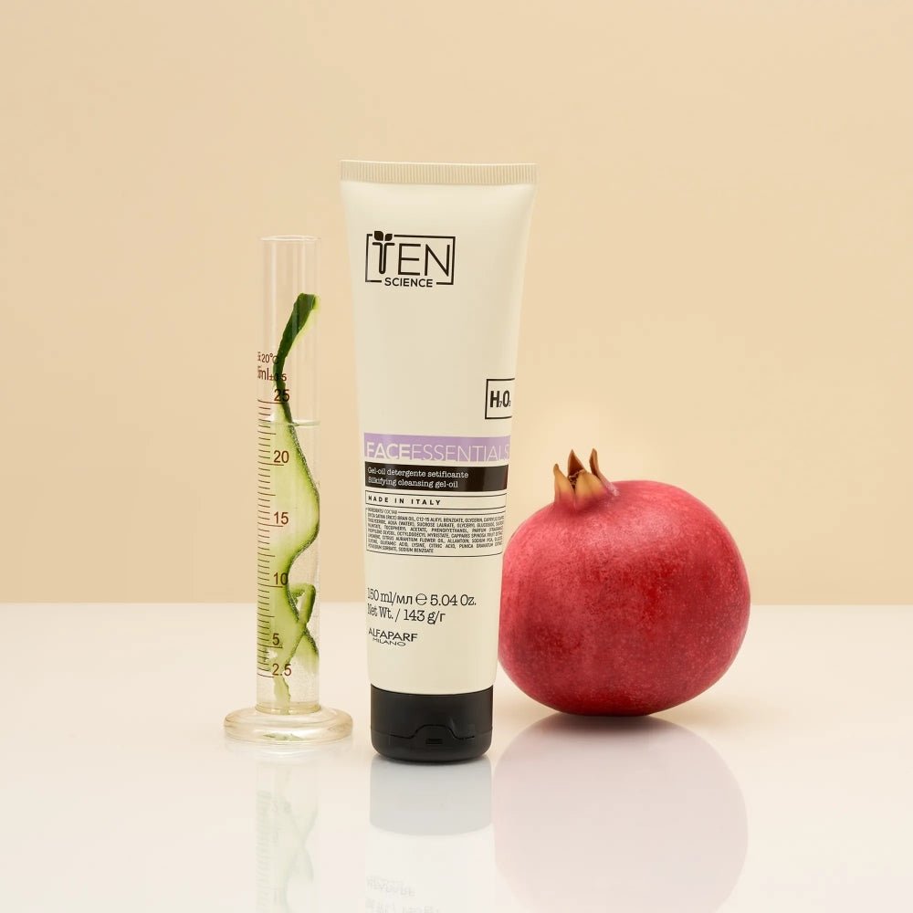 TEN Face Essentials Gel-Oil Cleanser is an innovative "thick oil-in-gel" texture that transforms into a light emulsion when massaged in. This product ensures effective makeup and impurity removal while respecting the skin's natural balance.