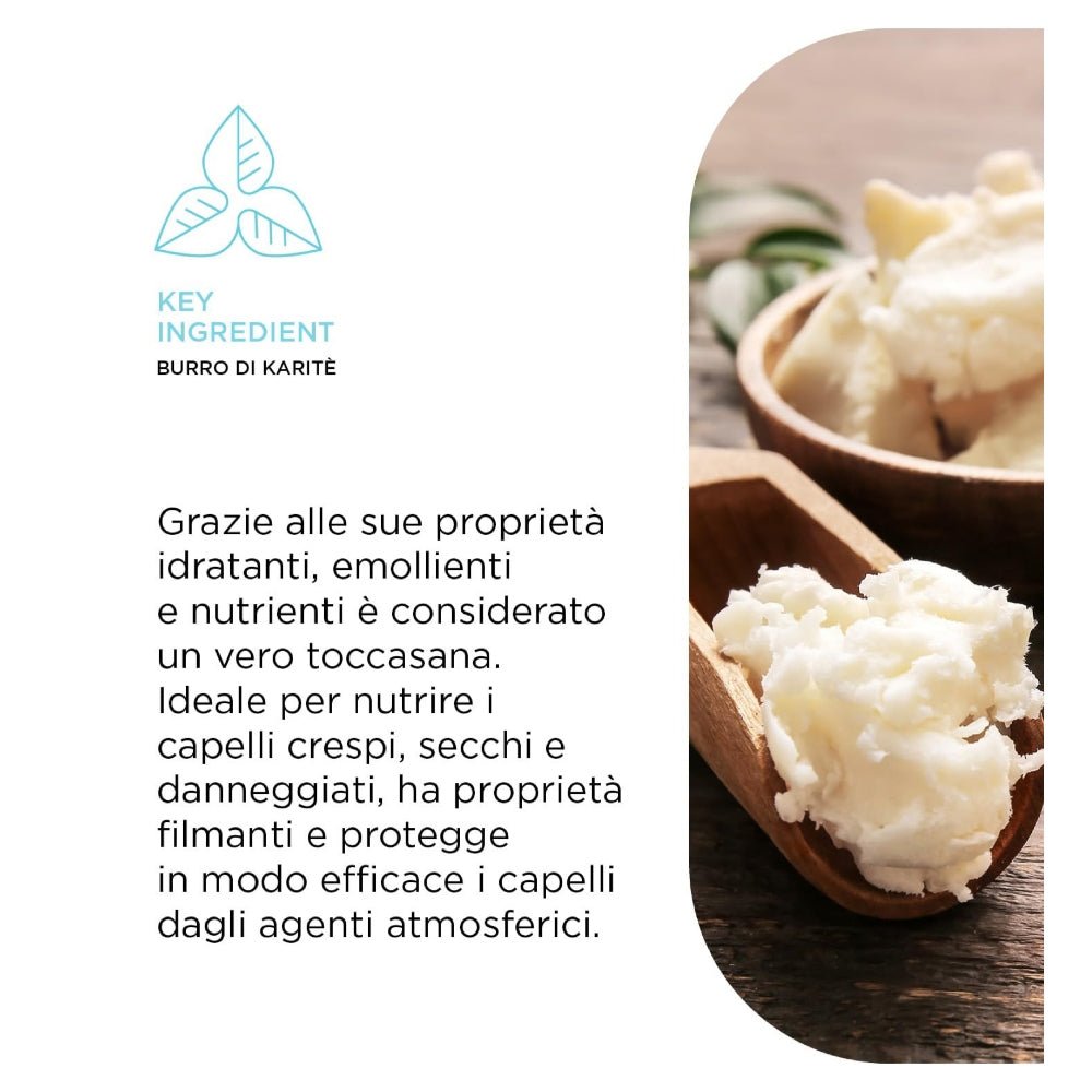 Thanks to 67% natural ingredients, the product cares for hair health, providing nourishment and protection without weighing it down. Perfect for daily care and styling of hair in need of intense hydration.