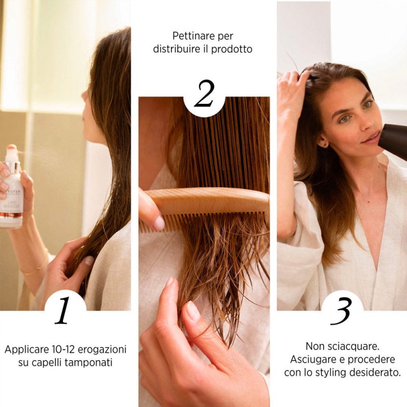 Regular use of System Professional Lipid Booster helps rediscover the natural beauty of hair which, even after the first applications, appears healthier, shinier, fluffy, elastic, hydrated and deeply regenerated.