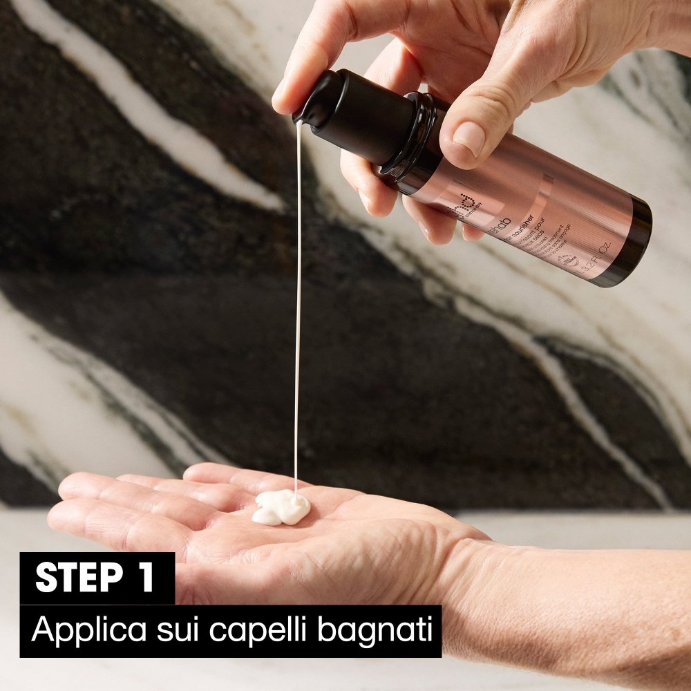 • Facilità d'uso, si applica facilmente su capelli bagnati e si attiva con il calore degli strumenti ghd, rendendolo un trattamento pratico e veloce.