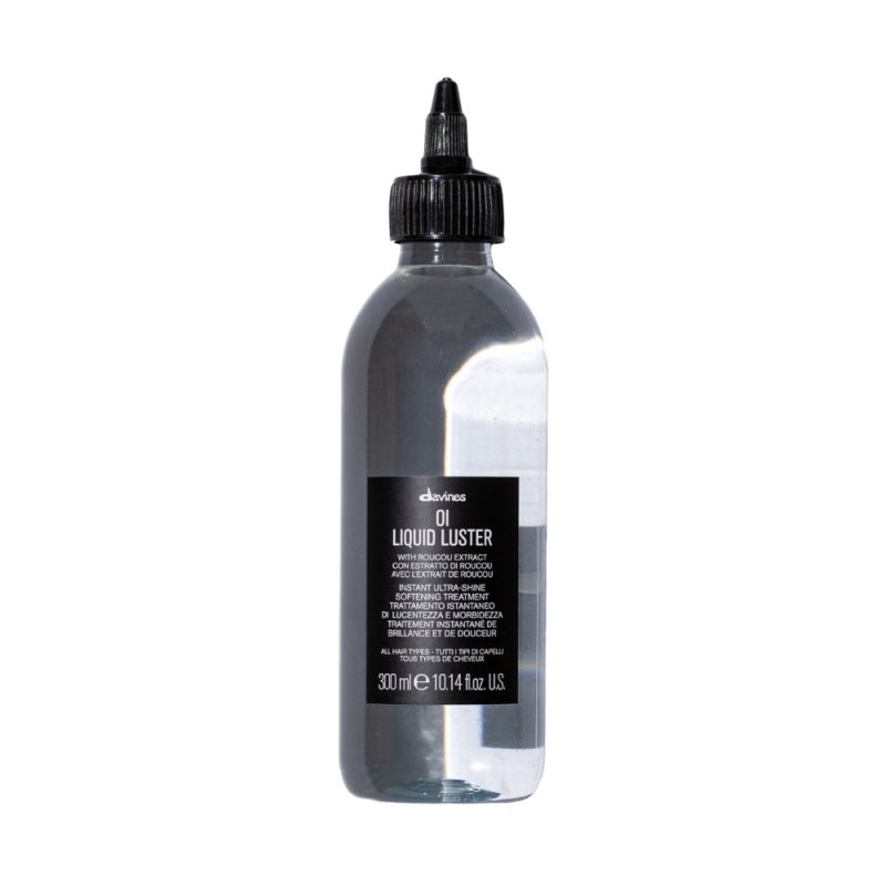 Un trattamento professionale illuminante adatto a tutti i tipi di capelli. Davines Oi Liquid Luster con la sua innovativa texture ad acqua penetra in profondità nelle fibre dei capelli idratando e conferendo alla chioma istantaneamente luce e morbidezza. Assicura una finitura liscia, fin dal primo utilizzo, senza appesantire i capelli con un effetto "specchio" visibile fin da subito. Ricco di principi attivi naturali e di oli essenziali assicura un finish elastico: l'olio di Roucou e di Carciofo agiscono aumentando la capacità di rifrazione delle fibre capillari e agevolano la distribuzione del prodotto; gli acidi della frutta, ricavati dal mosto d'uva, compattano le fibre e donano un aspetto più sano e corposo ai capelli.