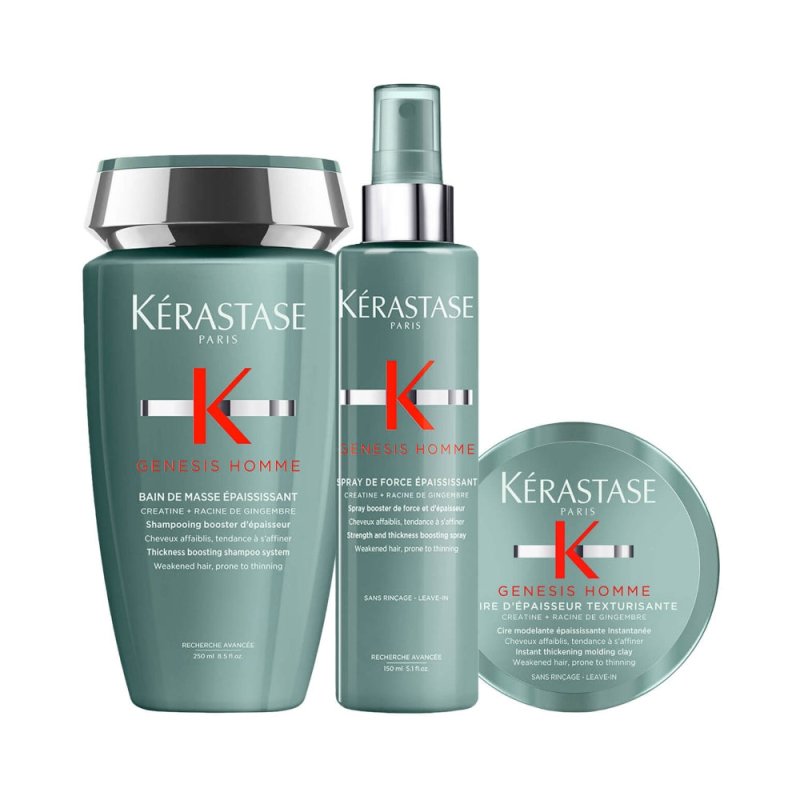 Il kit perfetto per gli uomini con capelli indeboliti e con tendenza al diradamento. Kerastase Genesis Homme Kit Routine per Capelli Fini è un trattamento per ridensificare i capelli fini e aumentare la massa. Lo shampoo ispessisce e aggiunge volume. Lo spray aumenta istantaneamente la forza e lo spessore dei capelli. la cera modellante ispessisce istantaneamente i capelli.