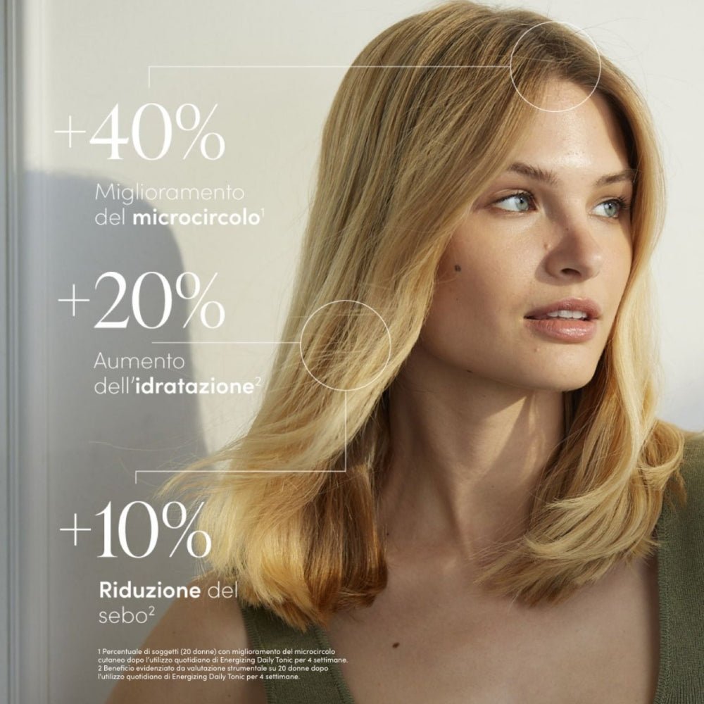 Medavita Lotion Concentree Energizing Daily Tonic è un tonico energizzante e rivitalizzante per uso quotidiano con pH 5,5 per il cuoio capelluto e i capelli. Il tonico energizzante rafforza il cuoio capelluto e lo energizza per la crescita di capelli belli, soffici e forti. Grazie all'azione di biotina, caffeina, vitamina C ed estratto di epilobio, dona energia e forza al cuoio capelluto. Il risultato sono capelli freschi e rinvigoriti dalle radici alle punte.