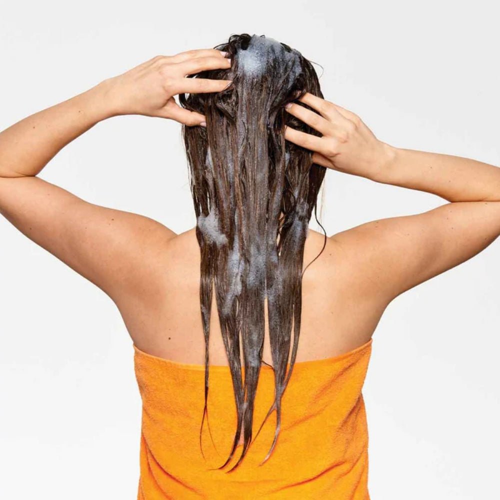 - Distribuire uniformemente sul cuoio capelluto e capelli umidi.