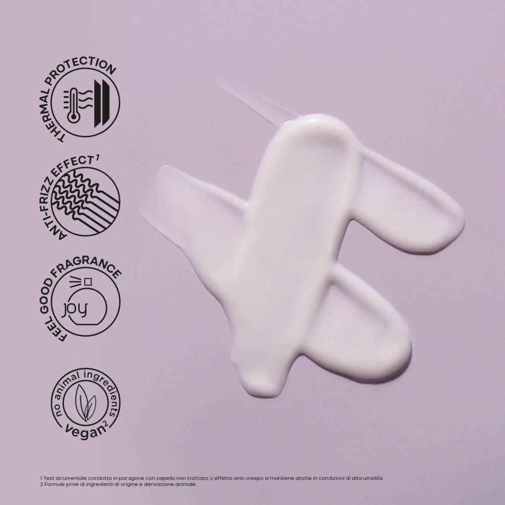 La formula vegana fornisce un affidabile effetto anti-crespo, non appesantisce i capelli e consente uno styling senza sforzo. La confezione è realizzata in plastica riciclata e riciclabile, il che sottolinea ulteriormente il suo rispetto per l'ambiente.
