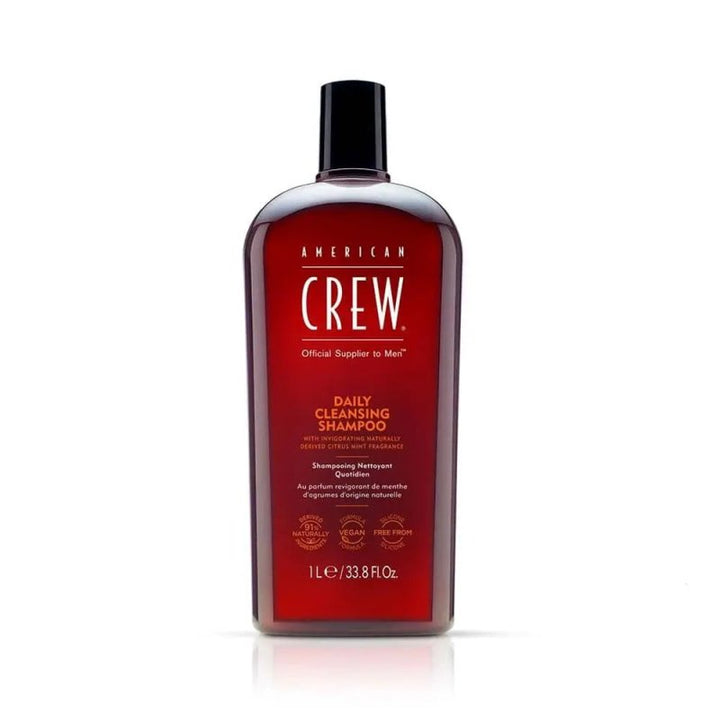 Shampoo senza siliconi per uomo che deterge i capelli e il cuoio capelluto dal sebo in eccesso e dai residui dei prodotti per lo styling. Pulisce profondamente e grazie alla vitamina B5 idrata il cuoio capelluto e dà ai capelli una sana lucentezza. La formula è stata studiata per non seccare i capelli. Lascia i capelli rinfrescati, morbidi e più suscettibili allo styling. American Crew Daily Cleansing Shampoo è perfetto per i capelli normali e grassi.