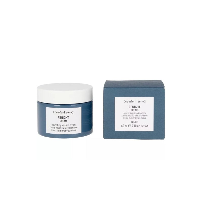 Crema da notte nutriente per il viso consigliata per tutti i tipi di pelle. Con olio di bacche di Goji, vitamina E, acido ialuronico e olio di macadamia svolge un’intensa azione antiossidante. Con Comfort Zone Renight Cream al risveglio la pelle appare rigenerata e nutrita. Ideale per pelli denutrite, secche, stressate e stanche. Aiuta a ridurre la stanchezza e lo stress, perciò, se applicata tutte le sere prima di addormentarsi, al risveglio lascerà il viso disteso, morbido e vellutato. È formulata dall'88% di ingredienti di origine naturale, non contiene nessun silicone né parabeni, coloranti artificiali e derivati di origine animale. Adatta anche ai vegani.