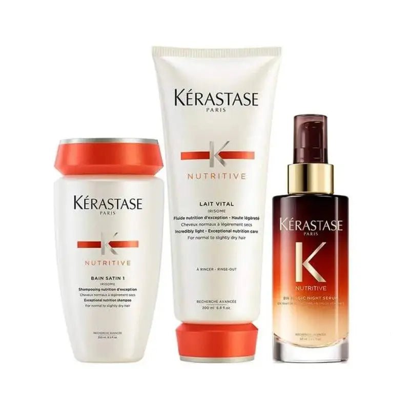 Routine di cura per i capelli secchi e sensibilizzati. Lo shampoo nutriente lavora dalle radici alle punte per nutrire i capelli secchi. Il balsamo nutriente, formulato per capelli da normali a leggermente secchi tratta i capelli in profondità. Infine il siero notte dopo notte fornisce 8 ore di nutrizione profonda per tutti i tipi di capelli secchi.