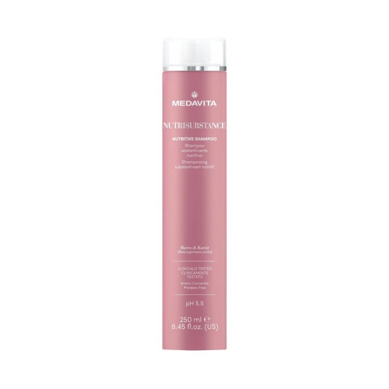 Per rinforzare, nutrire e restituire pienezza alla fibra capillareMedavita Shampoo Sostantivante Nutritivo con Burro di Karité, Pantenolo e Gomma di Guar si occupa di nutrire e idratare in profondità i capelli e li protegge da ulteriori danni. In un breve periodo di utilizzo regolare, i capelli saranno visibilmente rivitalizzati, pieni di nuova forza e lucentezza. Lo shampoo deterge delicatamente i capelli, nutrendoli e idratandoli in profondità.
