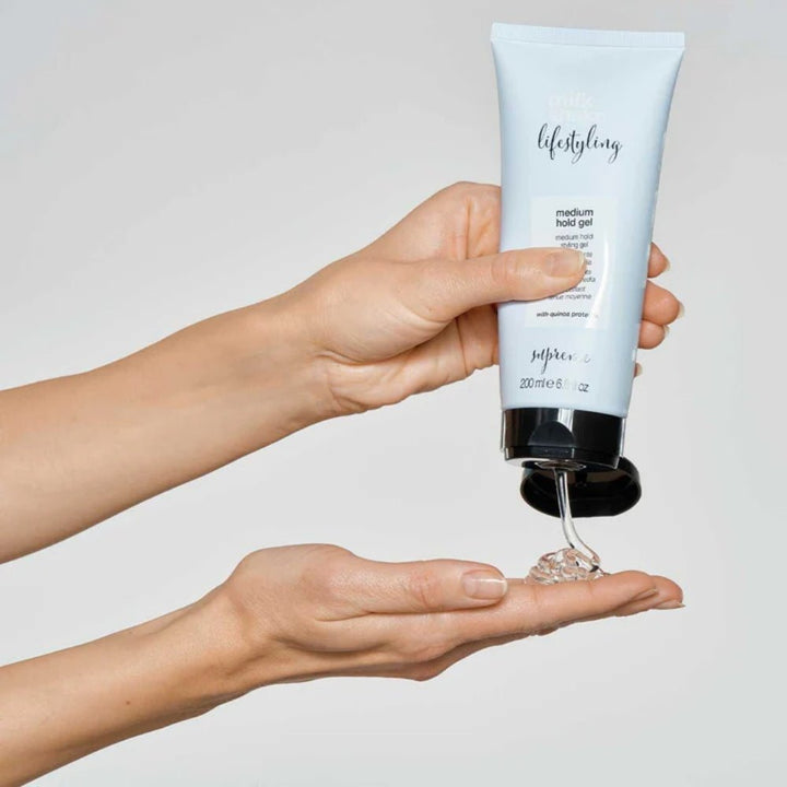 Milk Shake Medium Hold Gel è un gel professionale per lo styling che offre tenuta, definizione e controllo istantanei, permettendo di creare qualsiasi tipo di acconciatura con un look naturale e una texture flessibile.