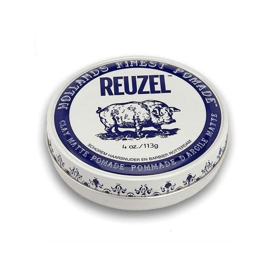 Reuzel Clay Matte Pomade, pomata di argilla naturale che dona una tenuta flessibile e forte. La sua formula a prova di sudore e a base d'acqua garantisce una tenuta eccezionale per tutto il giorno.