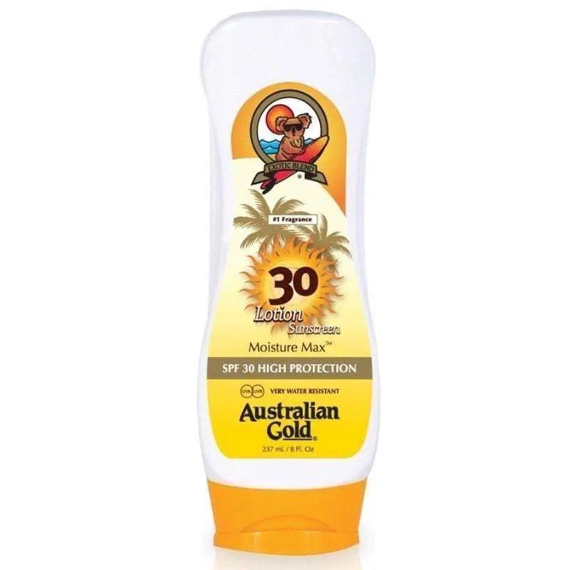 SPF 30 Lozione Australian Gold, per trascorrere una bella giornata sulla spiaggia protetta dai raggi ultravioletti. Resiste ad acqua e sudore. Arricchita con Aloe Vera nota per le sue proprietà lenitive e antiossidanti, e Vitamina E che protegge la pelle dall'azione dei radicali liberi, i principali responsabili dell'invecchiamento cutaneoe dei danni cellulari.