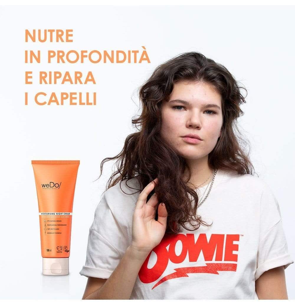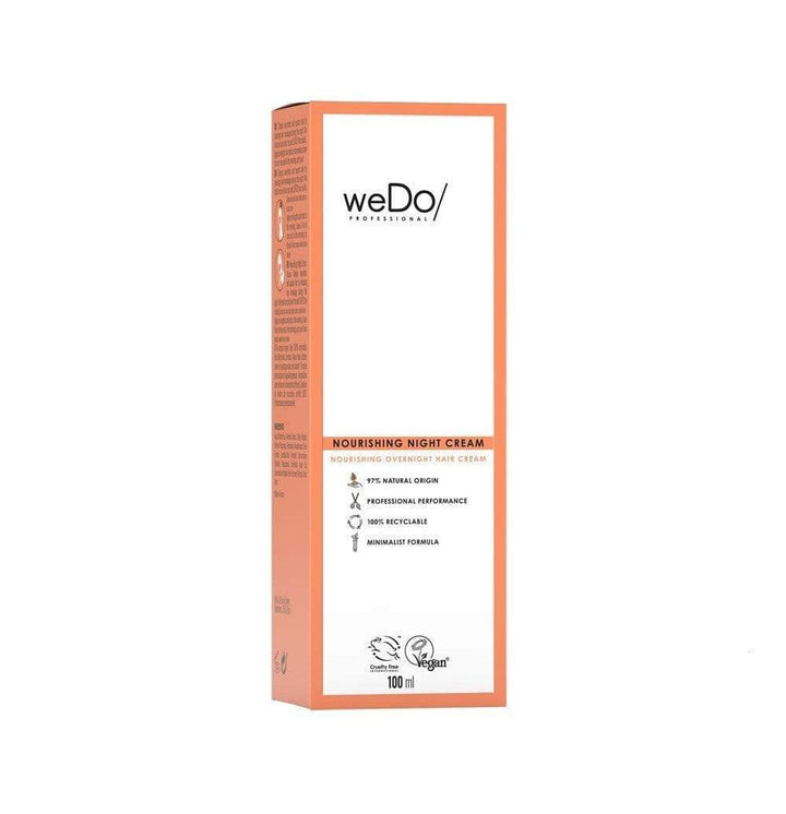 Una maschera riparatrice per capelli da applicare durante la notte per un'intensa azione idratante e nutriente. La maschera è pensata per chi ama prodotti per capelli professionali biologici e può essere utilizzata su capelli lisci o ricci che hanno bisogno di nutrimento e idratazione. Si tratta di un cosmetico biologico, senza siliconi e coloranti artificiali e proprio per questo adatto a tutti, ma in particolare a coloro che vogliono utilizzare esclusivamente prodotti naturali per capelli, infatti contiene il 97% di ingredienti naturali ed è cruelty free. Il segreto di weDo Professional Nourishing Night Crema è dato dal burro di cupuaçu certificato UEBT che dona ai capelli lucentezza, elasticità e morbidezza. Ha una composizione minimalista e quindi con pochi ingredienti, inoltre ha ricevuto l'approvazione da Vegan Society.