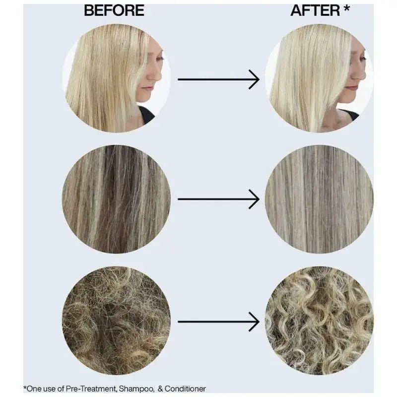 Com pH balanceado e formulado com Vitamina C e Brightening Care Complex, este sistema funciona removendo o acúmulo de produtos e agentes matificantes para revelar seu loiro mais brilhante e claro instantaneamente.