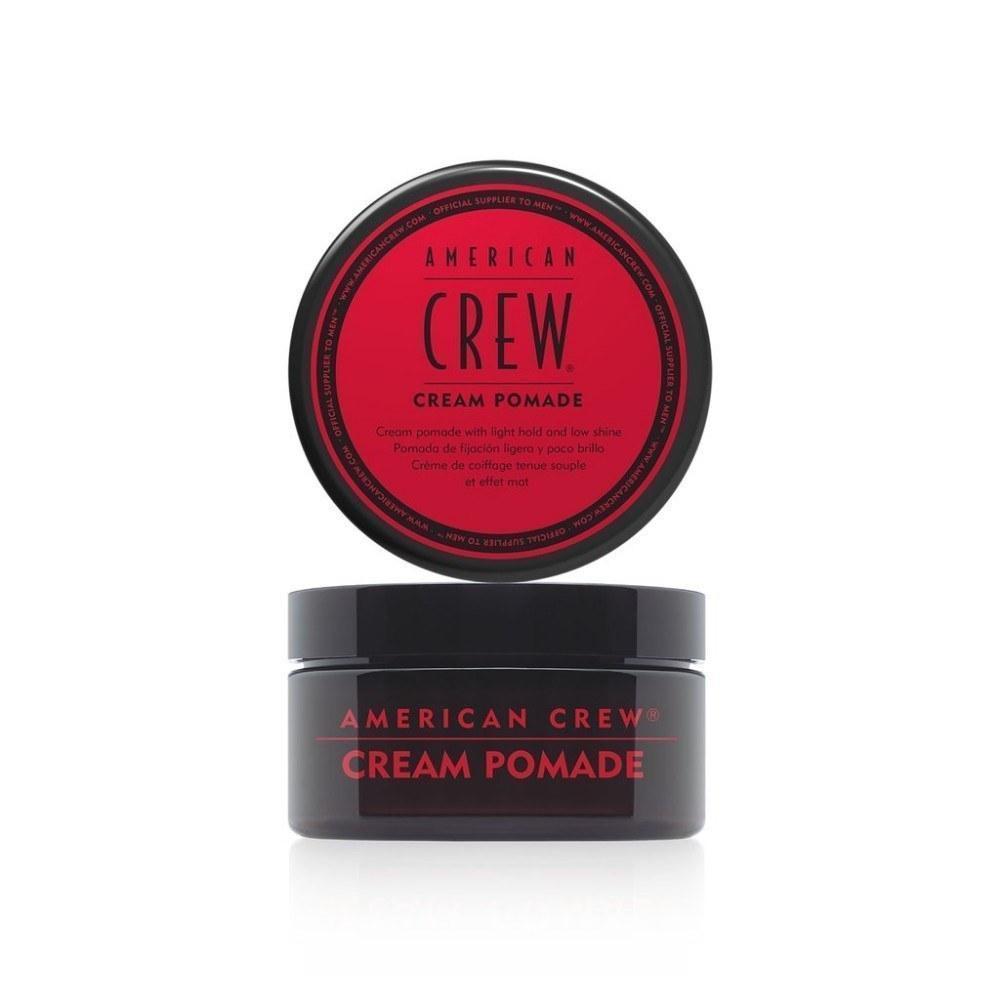 American Crew Cream Pomade , um creme modelador rico em hidratação que confere um aspecto natural. Acabamento fosco.