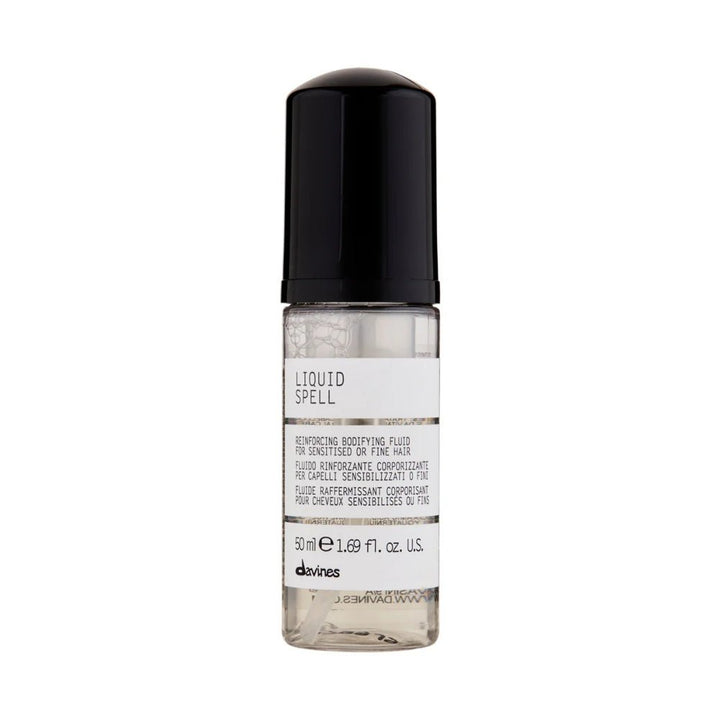 Fluido corporal fortalecedor para cabelos sensibilizados ou finos . Este produto, sem parabenos e silicones, deixa os cabelos mais fortes, compactos e com brilho natural . Davines Liquid Spell é capaz de recriar uma estrutura externa completa e compacta, conferindo maciez, brilho e tonicidade.