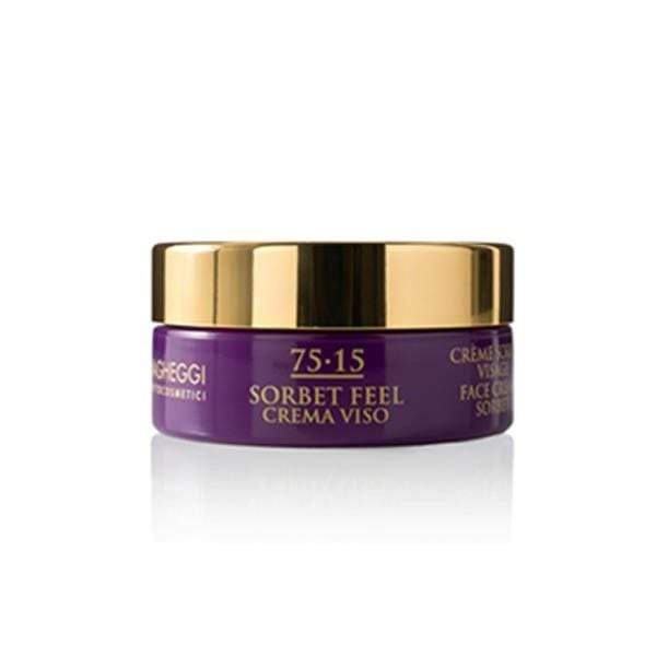 Vagheggi 75.15 Sorbet Feel Face Cream , creme facial sorbet com água de cereja ativa. Fresco e de rápida absorção, regenera, redefine e densifica os contornos do rosto, revelando a sua beleza. Perfeito para a estação quente, para ser usado pela manhã e à noite. Nos períodos mais frios, quando a pele precisa de um boost de energia, pode ser usado em combinação com os cremes de dia/noite da linha 75.15.